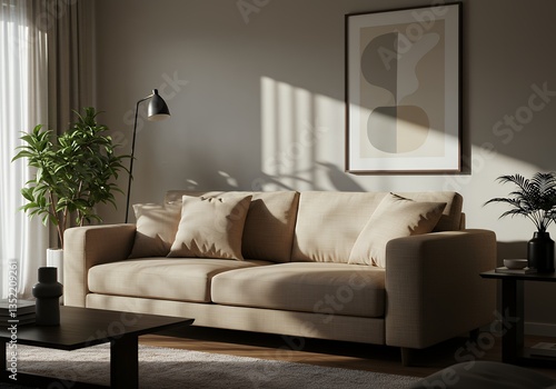 Fototapeta premium Modern Cozy Beige Living Room