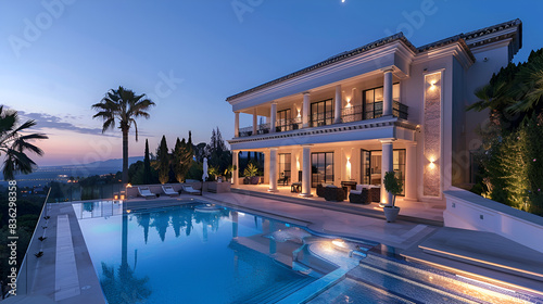 Obraz premium modern cozy house with pool and parking for sale or rent in luxurious style...