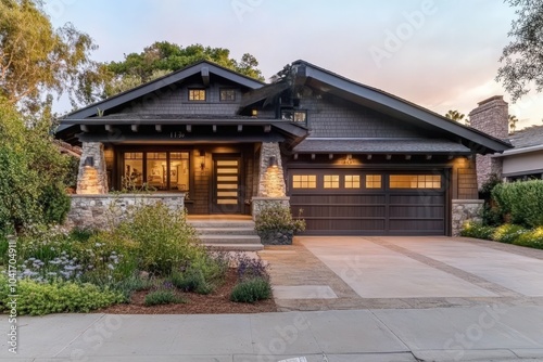 © Vlad, Obraz premium Modern Craftsman Style Home Exterior. Front View of House with Garage and Driveway