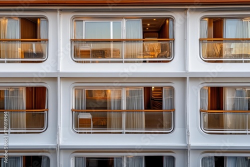 Obraz premium Modern cruise ship balconies showcase elegant design and relaxing atmosphere