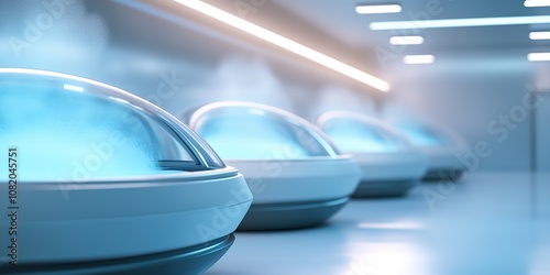 Fototapeta premium Modern cryotherapy capsules in minimalistic wellness center