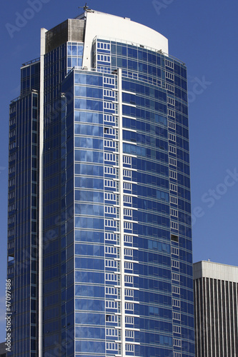 © dbvirago, Obraz premium Modern Curved Blue Glass Office Tower