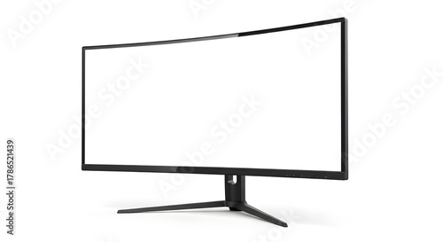 © Reshad, Naklejka premium Modern curved computer monitor with a blank white screen on a black stand isolated on a white background