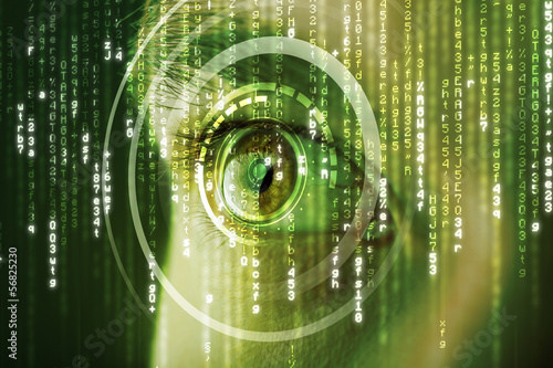 © ra2 studio, Fototapeta premium Modern cyber woman with matrix eye