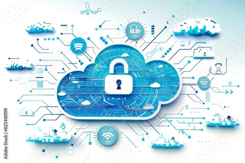 Fototapeta premium Modern Cybersecurity Dashboard with Data Analysis and Lock Symbol on Computer...