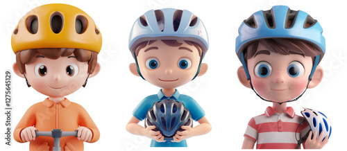 © Graphic Master, Naklejka premium Modern 3D Cycling Helmet Illustration with Boy transparents Background