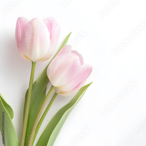 Fototapeta premium modern 2D doodle cartoon flower concept with open space for text, featuring whimsical floral and leafy elements on crisp white backgrounds.