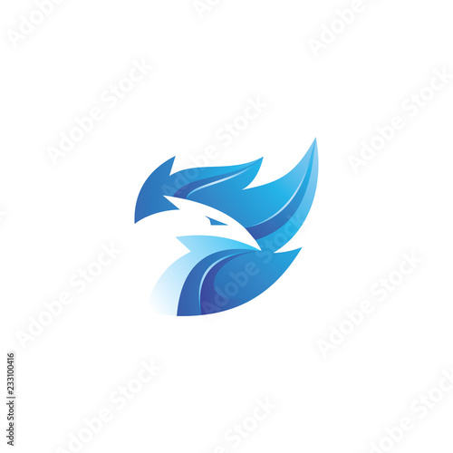 © putra_purwanto, Obraz premium Modern 3D flame, fire and bird phoenix blue logo