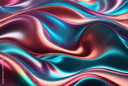 © Michael, Obraz premium Modern 3D Fluid Shapes with Shimmering Gradient Colors and Creative Wave Patterns