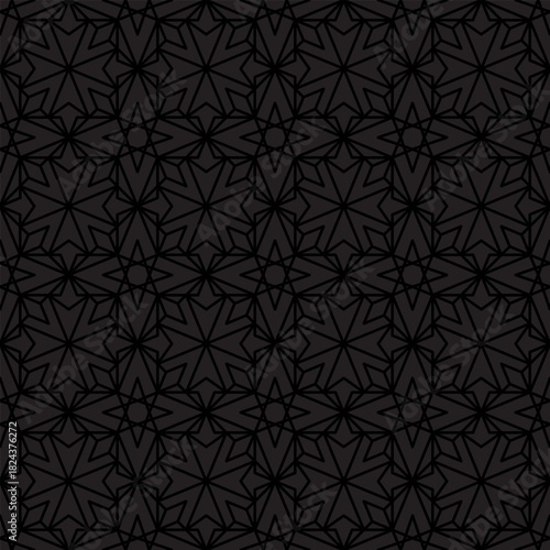 Fototapeta premium Modern dark geometric seamless pattern with bold polygon shapes and clean linear structure. Perfect for backgrounds, wallpapers, textiles, branding and contemporary design projects.