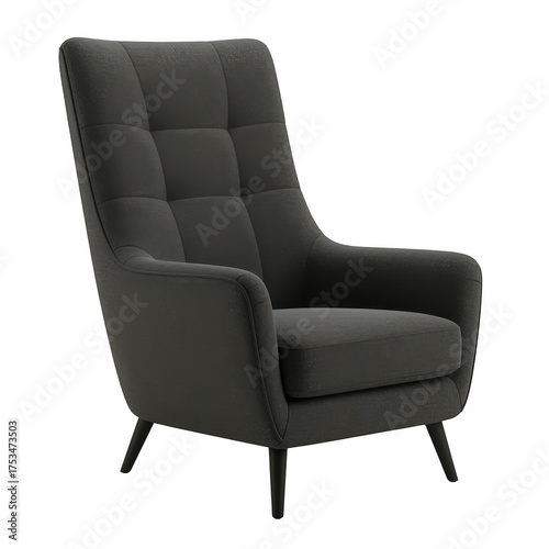 © mdnahidkha23, Naklejka premium Modern dark gray tufted armchair isolated on transparent background