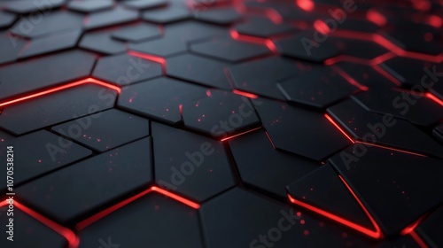 Obraz premium Modern dark hexagonal carbon fiber with red luminous lines and highlights...