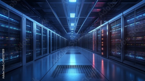 © Sandu, Obraz premium Modern Data Center with Server Racks