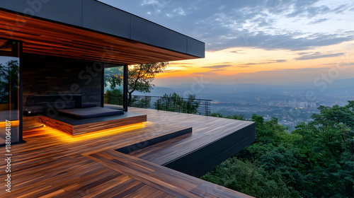 © Trippple, Obraz premium Modern Deck Sunset View Illustration