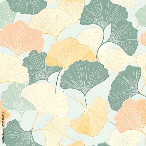 © rumpagraphic, Obraz premium Modern decorative ginkgo leaf seamless texture high resolution background