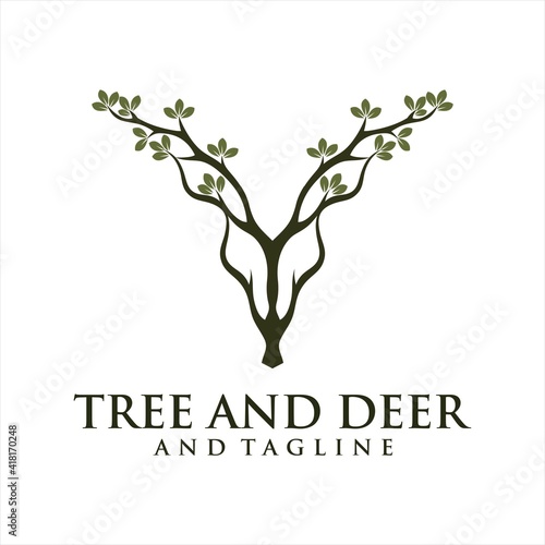 Obraz premium Modern deer head logo with leaf. Abstract, creative logo design Color and text can be changed according to your need,