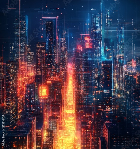 © Nishu Bro, Naklejka premium Modern Digital Cityscape with Abstract Elements, Generative AI