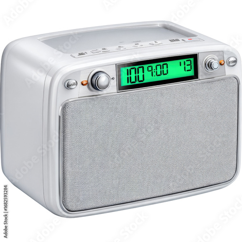 Fototapeta premium Modern digital clock radio with clear display, adjustable volume, and sleek...