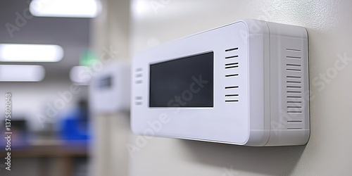 Obraz premium Modern digital control panel mounted on a wall in a sleek, well-lit office...