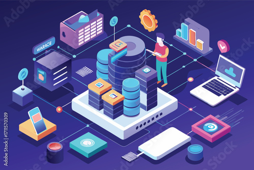 © Tanu, Obraz premium Modern digital data storage and analysis in a vibrant tech infographic setting