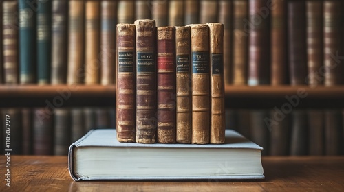 © zuriya, Naklejka premium Modern digital e-book alongside a stack of classic books, showcasing the blend of technology and training in a bright white setting.
