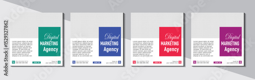 © Jobayer, Fototapeta premium "Modern digital marketing agency social media post template with red, white, and gray color scheme.