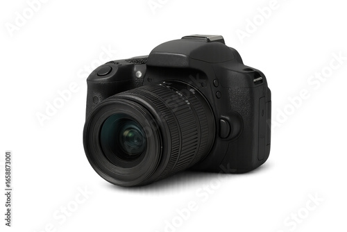 Naklejka premium Modern digital slr camera on transparent background, capturing moments