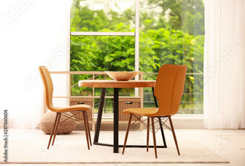 © New Africa, Obraz premium Modern dining room interior with table and chairs