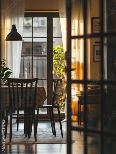© Elena, Obraz premium Modern Dining Room with Large Windows
