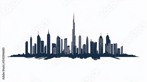 © Amien19, Naklejka premium Modern Dubai skyline silhouette against a clean white background graphic
