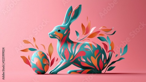 Obraz premium Modern Easter Bunny Surrounded by Vibrant Abstract Eggs