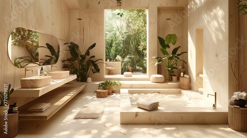 © lin, Obraz premium Modern Eco-Friendly Bathroom Interior with Greenery View