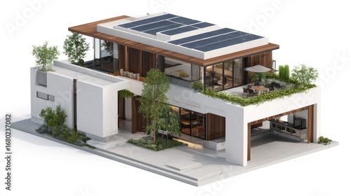 Fototapeta premium Modern eco-friendly house with solar panels and sustainable design