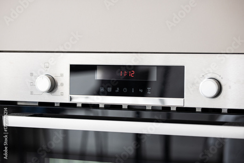 Fototapeta premium Modern, electric, integrated kitchen oven face with LCD and settings buttons...