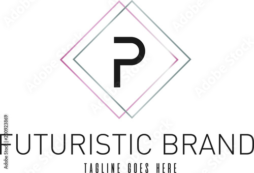 © Stacy, Fototapeta premium Modern Elegant Silver Rose Gold Geometric Letter P Logo