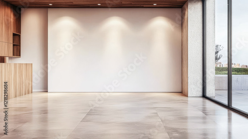 © JuanM, Obraz premium Modern empty interior space with natural light streaming through large windows