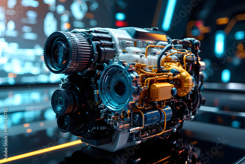 © Mahbubul, Fototapeta premium Modern Engine Tech Futuristic Machine Car Automobile Power System