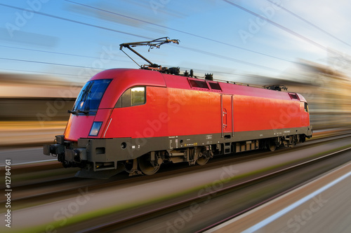 © Scanrail, Naklejka premium Modern european electric locomotive with motion blur