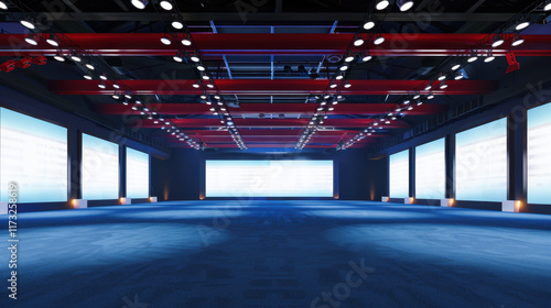 © Cedric, Fototapeta premium modern exhbition stage with large blank billboard