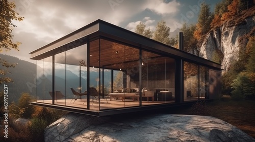 Obraz premium Modern exterior of a luxury villa in mountain. Created with Generative AI...