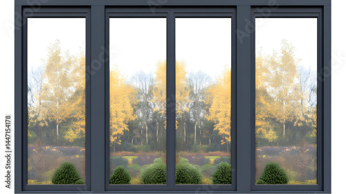 © Siasart Studio, Fototapeta premium Modern Exterior Window with Autumn Foliage View Illustration
