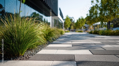 © Mas, Fototapeta premium Modern exterior with landscaping and pathway
