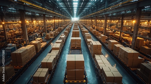 Obraz premium Modern Factory Overhead Perspective with Boxes