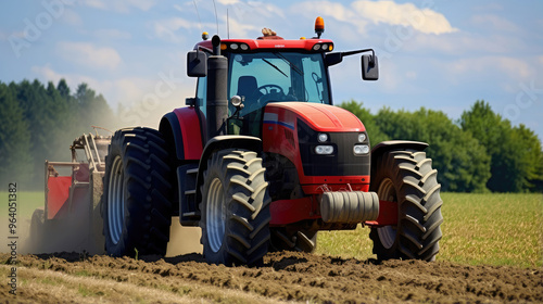 © evening_tao, Fototapeta premium Modern Farming: High-Power Tractor in Action