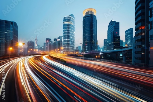 Obraz premium Modern financial hub bustling with digital transactions, driving development...