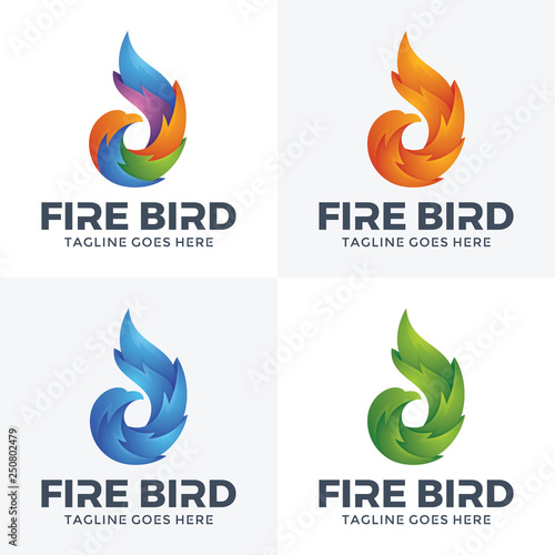 © creative_art86, Obraz premium Modern Fire bird logo with 3D style.