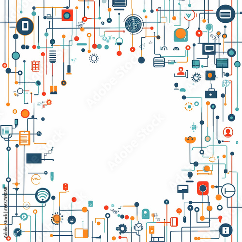 Obraz premium Modern Flat AI Circuitry and Financial Icons Frame - Symbolizing Technology Integration in Financial Management with Copy Space for Customization