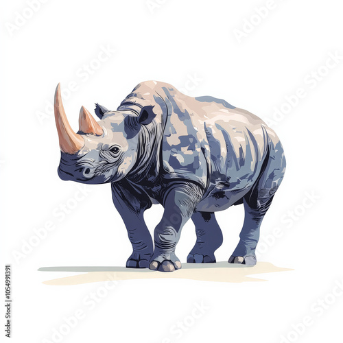 © INT888, Fototapeta premium modern flat design illustration of rhinoceros, showcasing its unique features and textures in stylized manner. artwork is isolated on white background, emphasizing rhino form and details