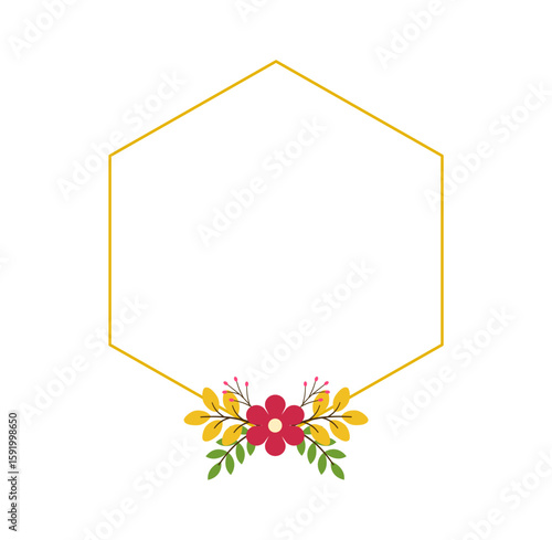 Obraz premium Modern Flat Flower and Leaf Frame for Wedding Invites and Thank You Card Designs