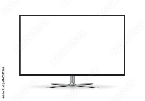 © Shamim Akhtar, Naklejka premium Modern flat screen display with sleek metal stand isolated on white background